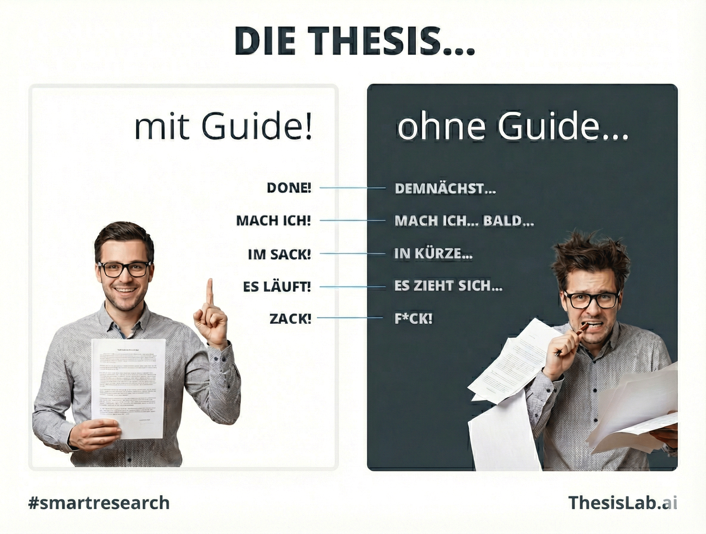 Das ThesisLab.ai hilft dir dabei, mit Anleitungen und von uns trainierten KI-Assistenten.